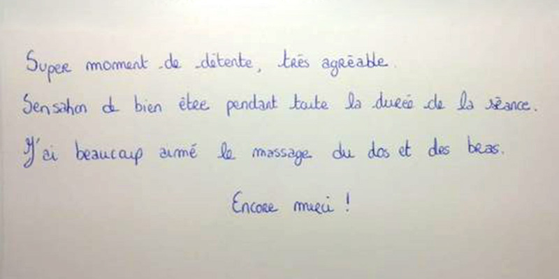 Quel kif! Massages ciblés et maîtrisés. Céline sait nous mettre à l’aise et nous détendre par ses gestes précis. À renouveler rapidement